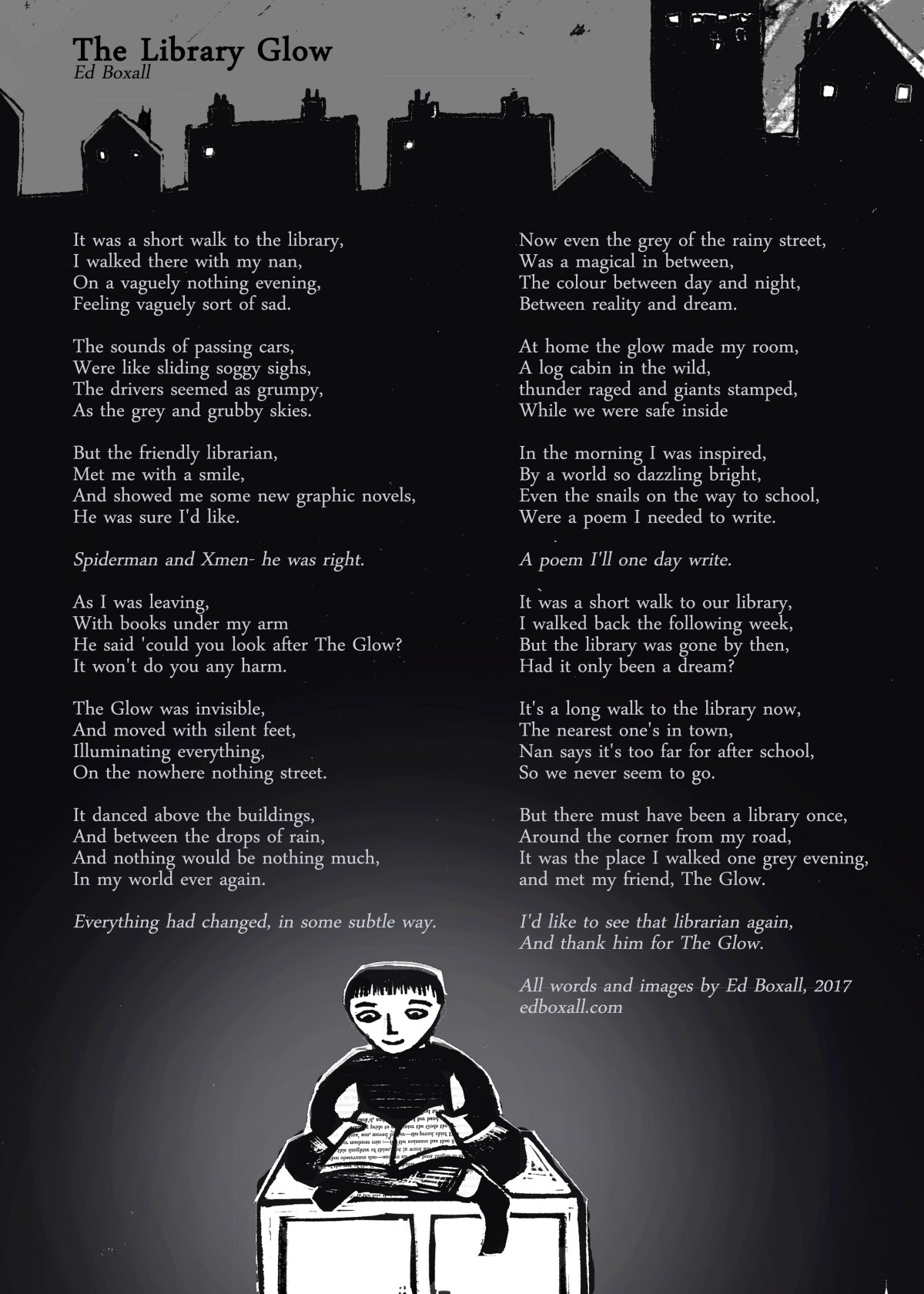 I wrote the poem The Library Glow a while ago to celebrate my local library, which was recently closed down.
